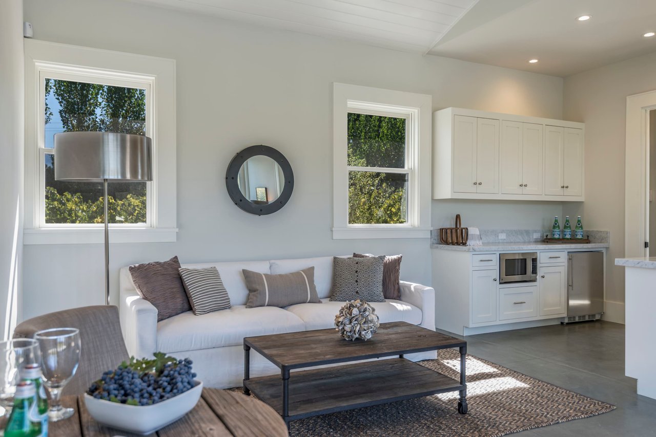 A contemporary vineyard farmhouse best describes the property at 1000 Fulton Lane. Located within walking distance of downtown St. Helena, this 4 bedroom, 3.5-bath estate offers soaring exposed beam ceilings, versatile living spaces and well-manicured grounds. The contemporary open floor plan highlights the timeless simplicity and tailored functionality offered in this home’s layout. Complete with oversized sliding glass doors, numerous outdoor living spaces, in-ground serene pool, a guest house with full kitchen, and vineyard views, this custom farmhouse is the perfect emulation of wine country living.